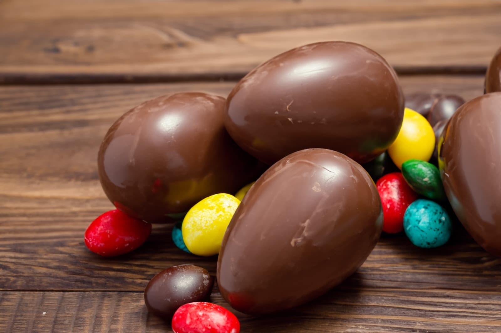 Foto: https://br.freepik.com/fotos-premium/ovos-de-pascoa-de-chocolate-e-doces-em-fundo-de-madeira_49017281.htm